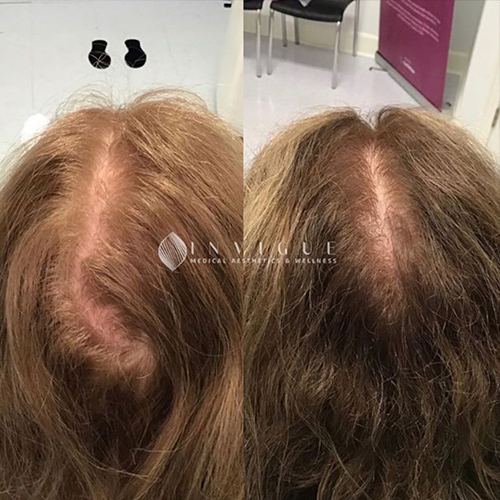 You may begin noticing reduced hair shedding and subtle improvements in thickness within the first 4 to 6 weeks. However, more visible changes, such as fuller areas, typically become noticeable around 3 to 6 months after starting the treatment.